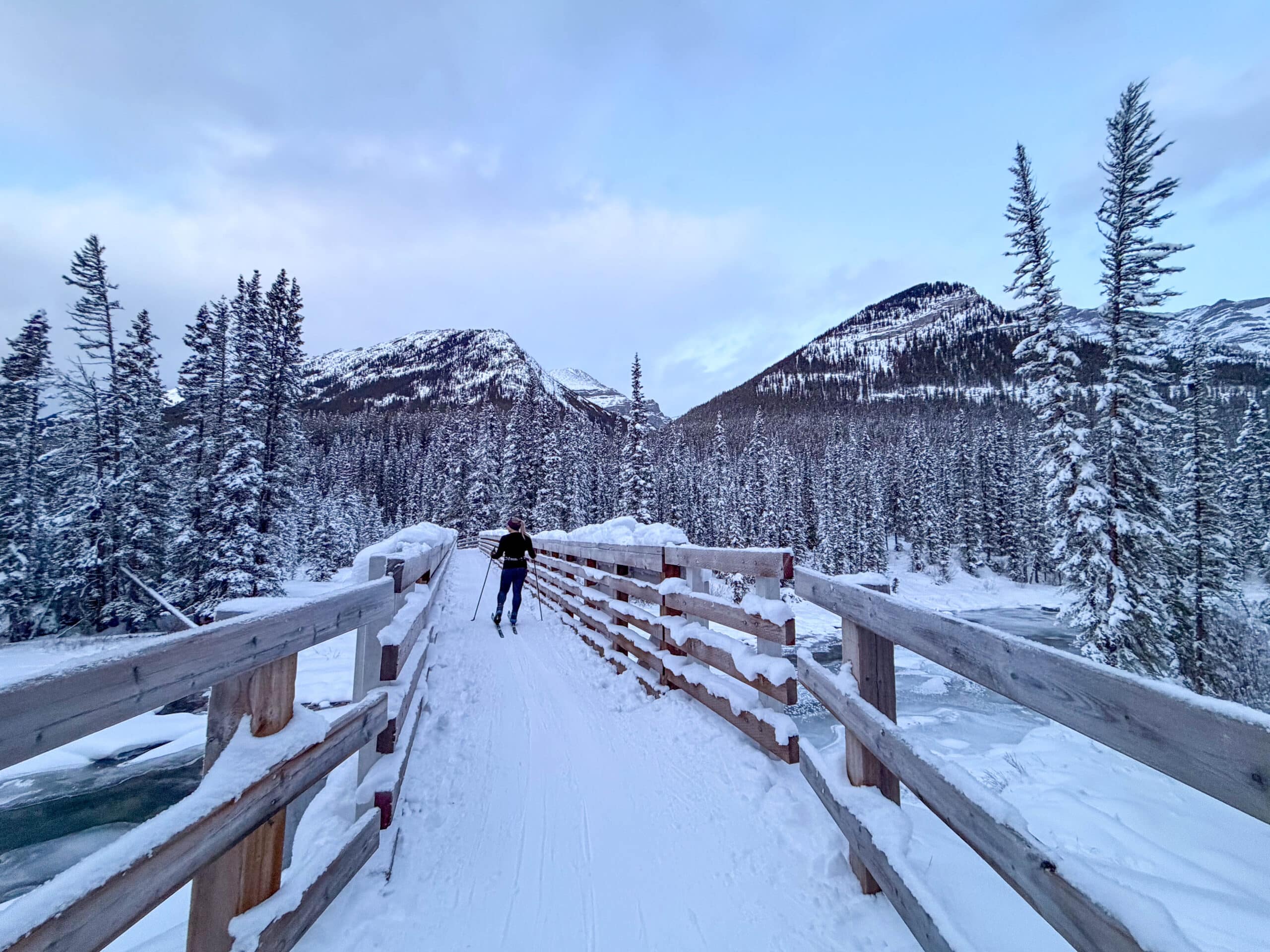 Banff National Park is a popular destination for cross-country skiing. Almost always, you are guaranteed to have views and plenty of snow! It’s important to note that cross-country skiing in Banff National Park can be weather-dependent, and the trails may not always be in prime condition. Always check with Parks Canada before planning your cross-country outing!